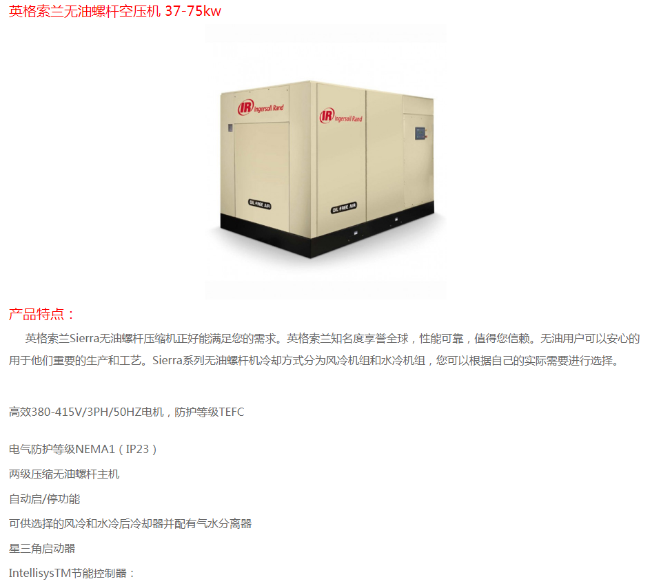 英格索蘭無油螺桿空壓機(jī)37-75KW